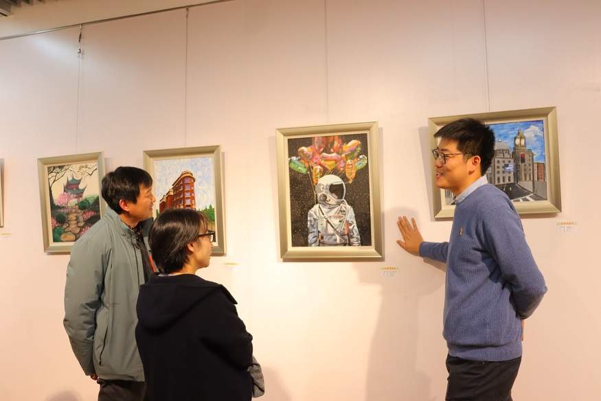 据介绍,beat365英国官网网站近年来全力推进卓越育人改革,重点支持一批美育改革实践项目,本次展览共展出原创丙烯作品50张,均由理科专业学生创作而成。