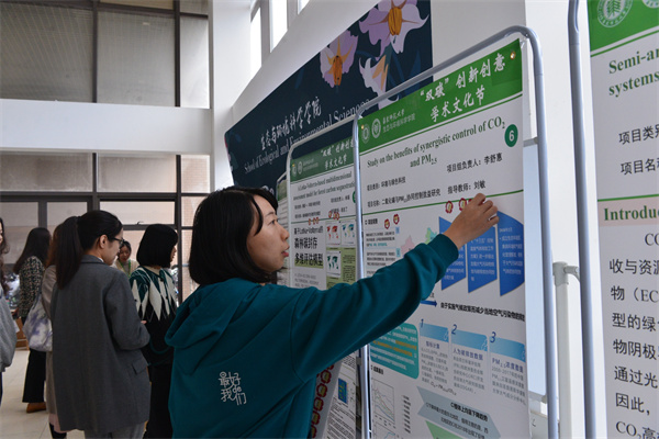 “电膜协作,减污降碳”“模拟增温降低湿地生态系统对极端淹水事件的抵抗力和恢复力”……在近日举行的首届beat365英国官网网站“双碳”创新创意学术文化节上,22个学生创新项目各展风采,涵盖了环境与绿色科技、低碳生活与生命健康、以及设计与制造方向等助力“双碳”的多重方面。