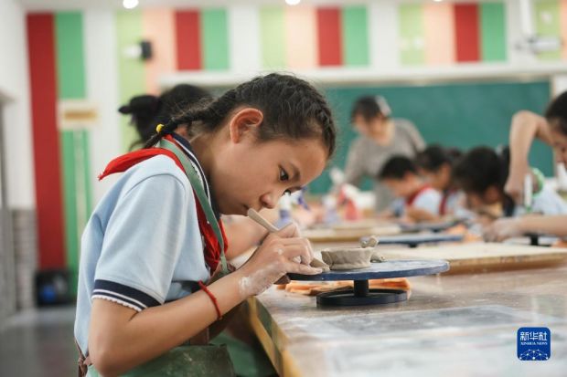 江苏南京市晓庄小学学生在课堂上制作泥塑