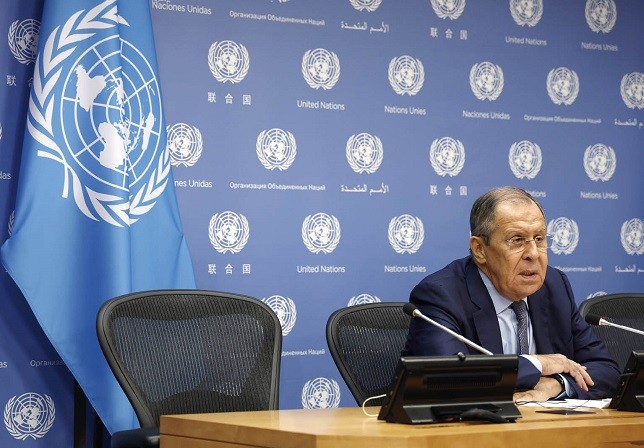 上图:9月24日,俄罗斯外交部长拉夫罗夫参加联合国大会,出席新闻发布会。