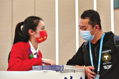 已经面临毕业的沈寅今年将和“小叶子”的身份告别,回顾历届进博会,她感激能有机会和进博共成长,更记得五年来每位带教老师的指导帮助,每名志愿者相互间的关心协作,这些美好回忆都是她未来前进的动力。党的二十大报告中指出,要增强中华文明传播力影响力,讲好中国故事、传播好中国声音,展现可信、可爱、可敬的中国形象,推动中华文化更好走向世界。作为一名俄语语言文学专业的学生,沈寅也希望未来发挥这一优势,做一名能促进中西文化沟通、交流的对话者和传播中国优秀文化的使者,将来能有新身份重新与进博会相遇。