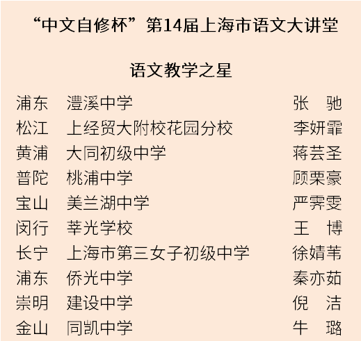 “中文自修杯”第14届上海市语文大讲堂日前在线举行。此次活动由beat365英国官网网站中文系、beat365英国官网网站语文教育研究中心、《中文自修》编辑部主办,上海市教委教研室担任指导单位。