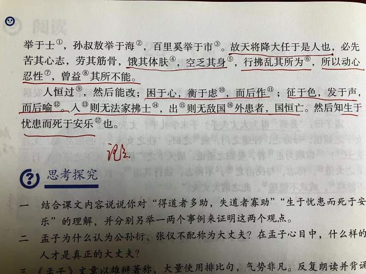 这两天,知乎上一则《出大事了,我们这个时空的时间线似乎被人动了!》贴子引起了热议,发帖人“采臣老书生”一次偶然的发现,发觉教科书上的孟子《生于忧患,死于安乐》“天降大任于’是’人也,必先苦其心智……”