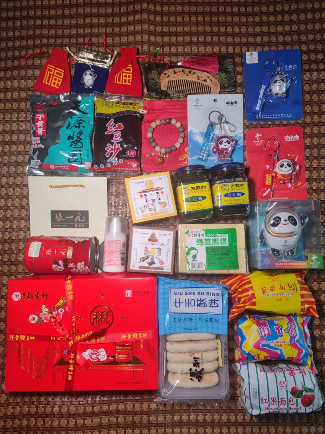 “我不知道对方会送什么,期待打开箱子时的惊喜感,就像开盲盒。”小杭没有失望。体积超过半个26英寸行李箱的特产快递里,老北京蒜肠、张一元茉莉花茶、黄豆酱与甜面酱、稻香村流心月饼等北京风味美食排列紧密,其间还见缝插针地塞了6个款式与颜色各异的冰墩墩挂件与摆件。