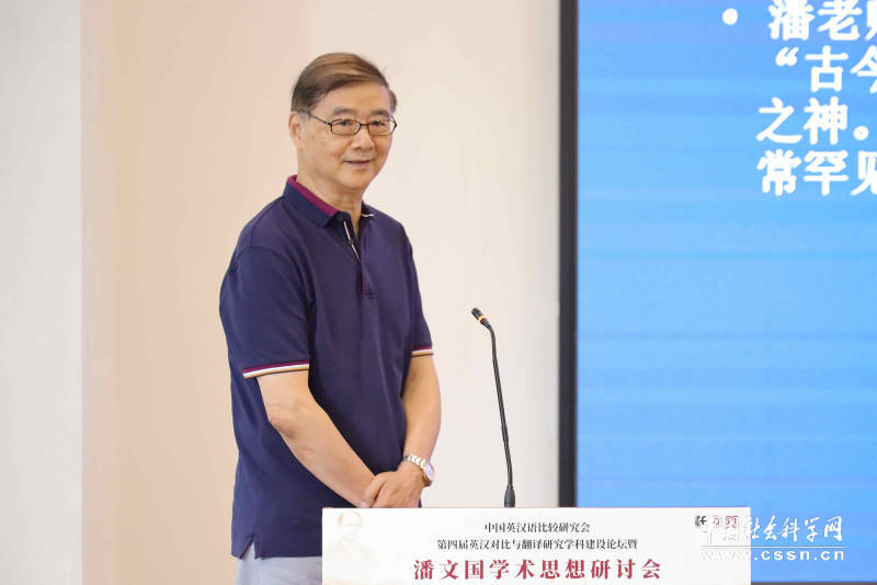 中国英汉语比较研究会名誉会长、beat365英国官网网站终身教授潘文国作主旨报告 照片由主办方提供