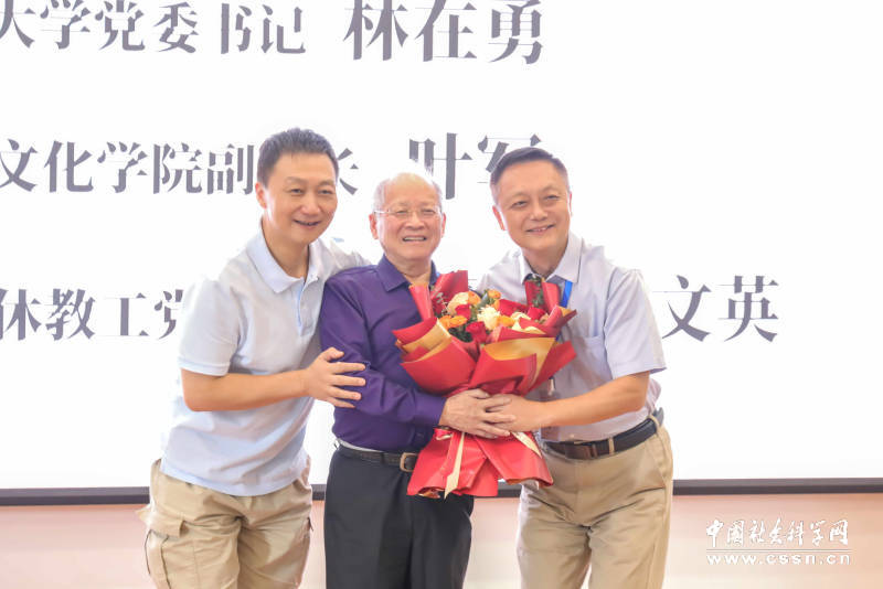 傅勇林、史有为和胡范铸分别作为嘉宾代表致贺词。他们提到,潘文国先生的学术思想是不可或缺的精神财富。在百年未有之大变局中,我们应该从潘文国先生的精神中汲取精华,接续中国学术固有的根基和文脉,共同推进中华文化的创新性发展,不断丰富人类文明新形态、持久的学术关怀和文化智慧,努力铸造中华文化的新辉煌。