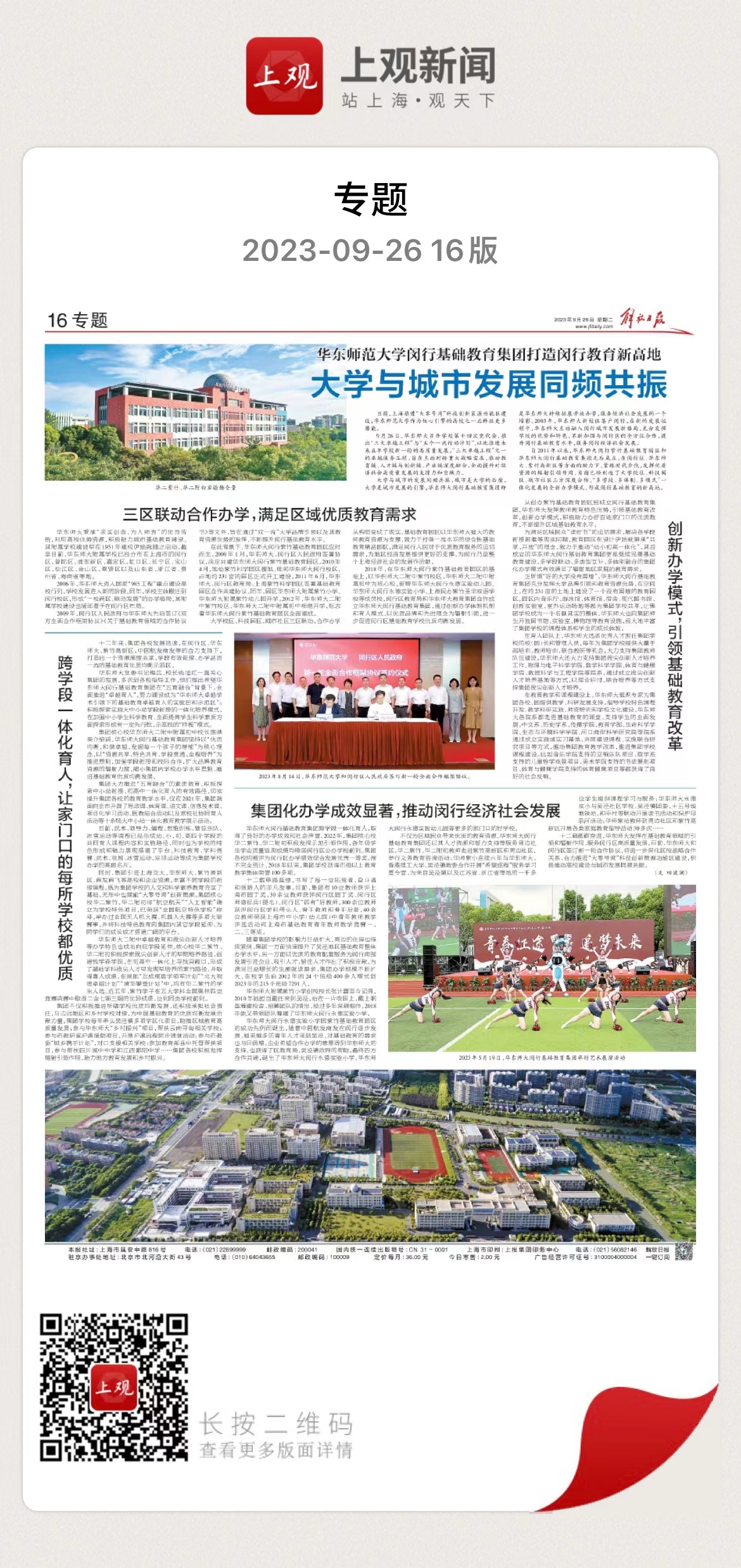 自2011年以来,beat365英国官网网站闵行紫竹基础教育园区和beat365英国官网网站闵行基础教育集团先后成立,在闵行区、beat365英国官网网站、紫竹高新区等方面的助力下,紧跟时代步伐,发挥优质资源的辐射引领作用,目前已经创造了大学校区、科技园区、城市社区三方深度合作,“多学段、多体制、多模式”一体化发展的全新办学模式,形成闵行基础教育的新高地。