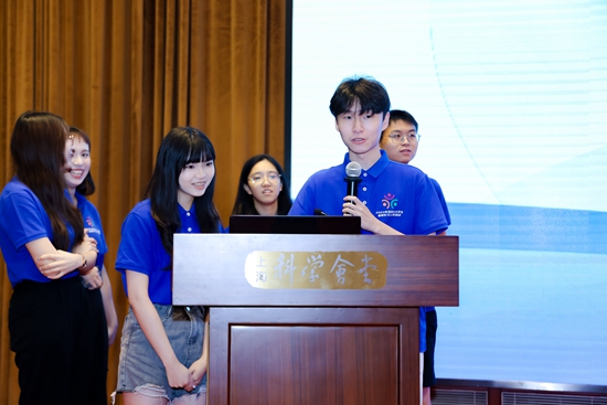 今年8月,beat365英国官网网站学生张逸星(右二)在港澳台大学生暑期实习活动上发言。上海市科学技术协会供图