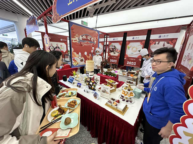 本届美食节内场吸引了本市40余家学校和相关单位汇聚成“高校美食市集”。大厨们以精湛的厨艺带来了融合经典传承与特色创意的118道美食。菜品琳琅满目、香气四溢,现场师生络绎不绝、摩肩接踵。各校大厨也互相取长补短,把其他学校的好菜肴带到自己的学校去,让整个参展美食节作品在各个学校复制推广。