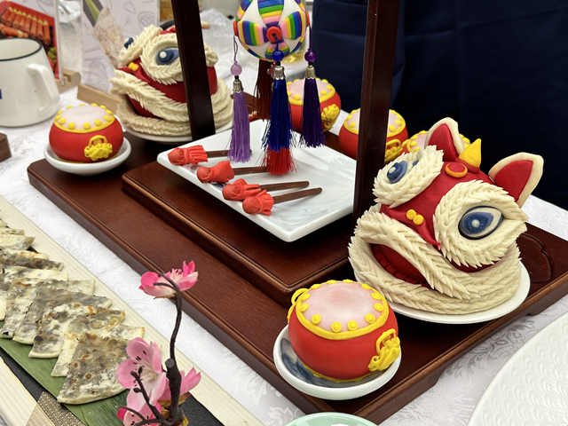 将蒸好的肋排裹满柚子茶,再撒上土豆松,华师大的金丝柚子骨柚香浓郁,外酥里嫩,大受好评。美食节上,还有手工鲜虾饼、栗杏挞、翡翠石榴球、黄金狮子球、以假乱真的多肉蛋糕……各家学校的菜品色香俱全,别具匠心。