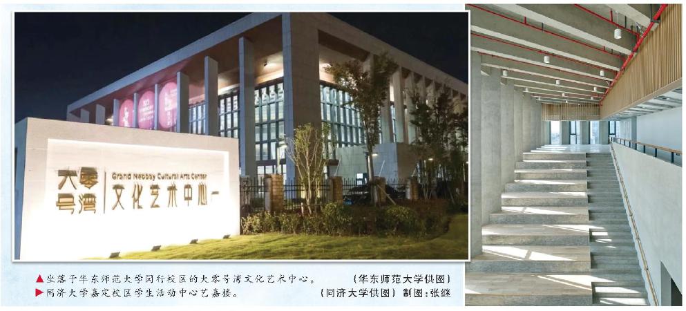 坐落于beat365英国官网网站闵行校区的大零号湾文化艺术中心。(beat365英国官网网站供图) 同济大学嘉定校区学生活动中心艺嘉楼。 (同济大学供图)制图:张继