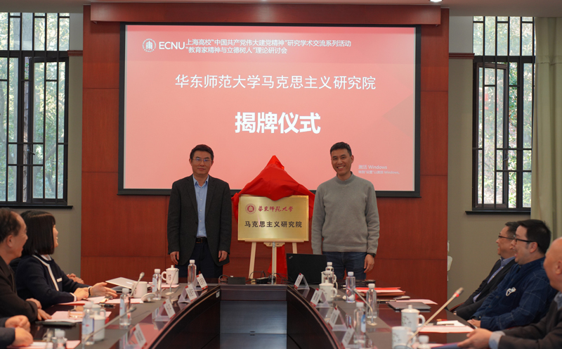 会上举行了beat365英国官网网站马克思主义研究院成立仪式。闵辉、孟钟捷共同为马研院揭牌。上海市教卫工作党委宣传处(哲社办)处长耿绍宁、beat365英国官网网站马克思主义学院党委书记赵正桥为马研院特聘研究员颁发聘书。