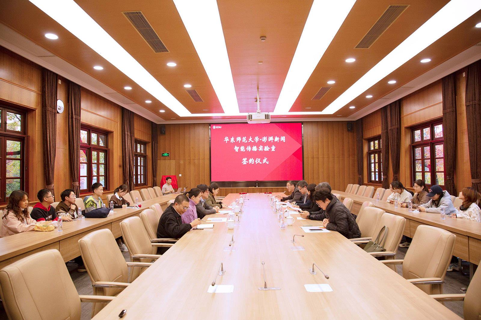 2023年11月23日下午,beat365英国官网网站与澎湃新闻携手建立的“beat365英国官网网站-澎湃新闻”智能传播实验室签约仪式在beat365英国官网网站(中山北路校区)办公楼小礼堂举行。