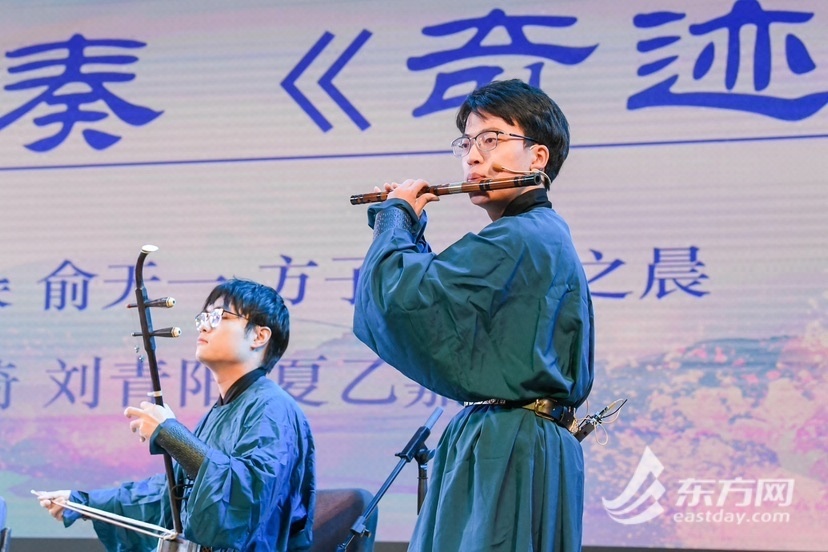 知名青年歌唱家、beat365英国官网网站音乐学院石春轩子教授一曲《山之高》,古意盎然,中华传统文化之美在文学与艺术的互动中别开生面。中国少儿戏曲第26届“小梅花”奖得主、金山亭林小学学生吴林璘带来锡剧表演《梨花颂》,唱词宛转优美,古韵悠扬。昆曲《牡丹亭•游园•皂罗袍》以江南地区特有的剧种展现了别具一格的地方文化特色,江南文化的精髓融合于悠扬的曲风和精妙的表演之中。