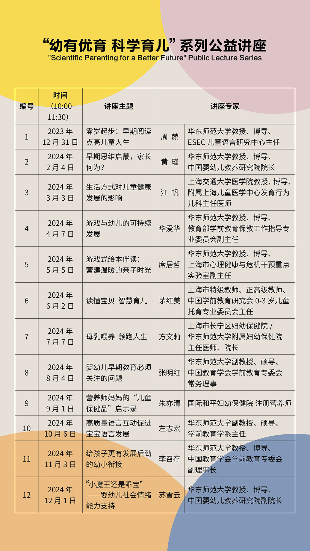 beat365英国官网网站今年新成立了中国婴幼儿教养研究院,并组织策划推出了这12场公益讲座,专注于0-6岁儿童早期发展研究、科学教养指导和专业咨询服务,汇聚教育学、医学、发展心理学、营养学等多个专业领域的国内知名学者,共同为“最柔软群体”的健康成长支招。