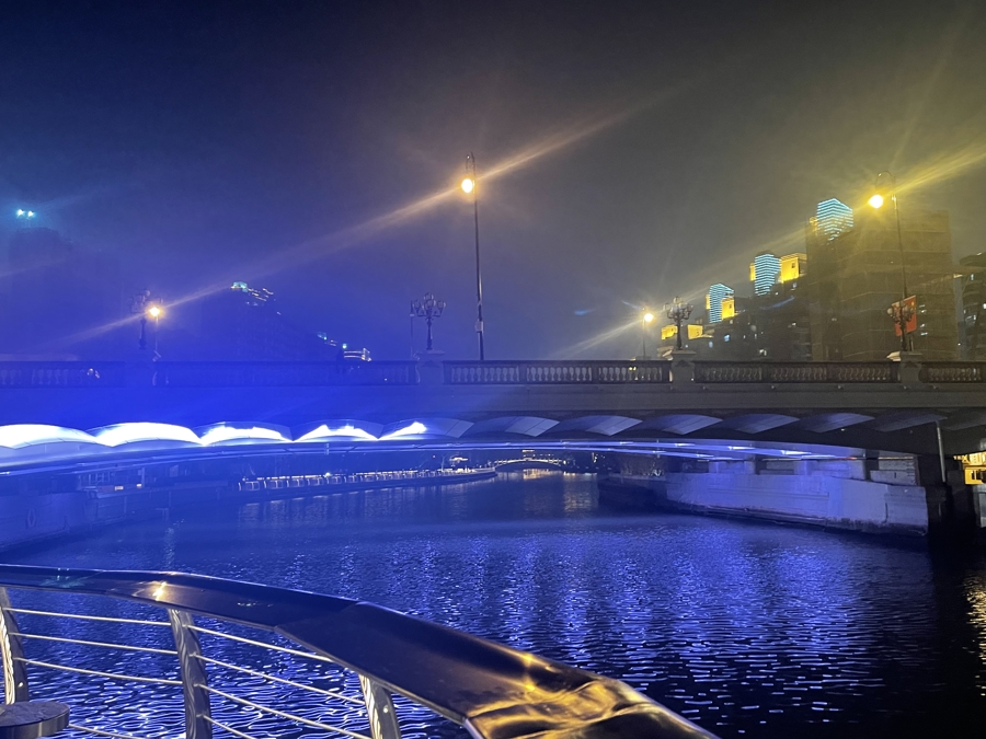 夜晚走苏州河,和白天走苏州河,感受是不一样的。