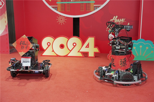 有趣的是,来自信息科学与工程学院研究生陈加昊同学带队的华东理工大学机甲大师起源战队研发的“Long”机器人也来到了现场,为师生带来Robot送“福”表演,他们希望用自己专业技术研发的机器人,活跃年夜饭活动的气氛,增添喜庆的元素。