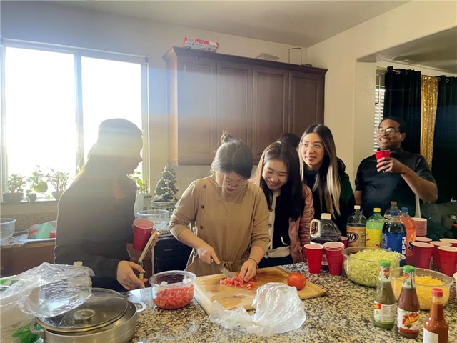 经济与管理学院硕士生汪欣冉和同学们一起为寄宿家庭准备了中国节日的必备美食——饺子。“在和面、包饺子的过程中,我向他们介绍了饺子的历史和中国的饮食文化。希望通过有参与感的体验,也让他们对中国文化有更深刻的了解。”