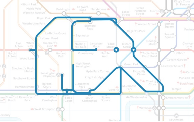 1988年,伦敦设计师保罗·米德尔威克(Paul Middlewick)每天下班回家都会盯着伦敦地铁图仔细端详,在横纵交织的路网中偶然发现了一只大象的轮廓,日复一日,蝙蝠、猫、北极熊、狗甚至鲸鱼等一系列动物一个个跃然纸上,Paul也开始利用地铁图上的线路、车站和路口进行创作。2001年,尼克·托马斯(Nick Thomas)加入了Paul的行列,一起找到拥有伦敦地铁图版权的伦敦交通局,寻求并获得正式使用许可,“地铁动物”系列文创在专门的网站正式亮相。现今,巴黎、莫斯科和纽约等世界大都市的地铁交通地图爱好者们也加入了“寻找地铁动物”的行列。围绕地铁动物们的文创产品愈加琳琅满目,可以说“趣味一直在‘路’上”。