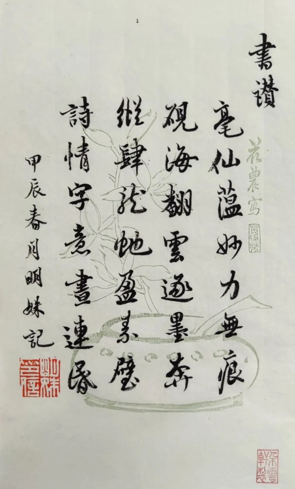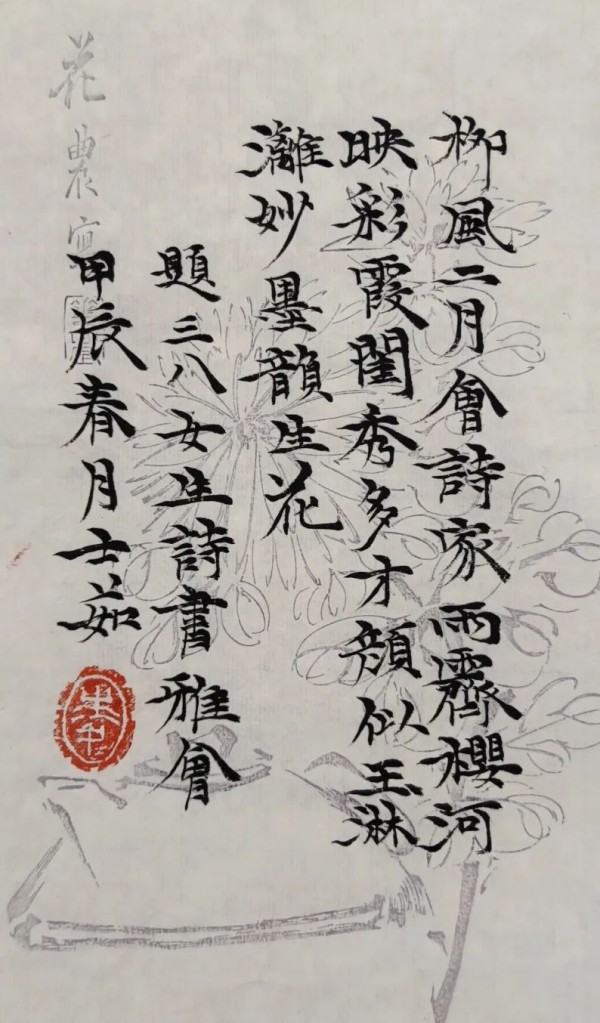 闺秀多才颜似玉,淋漓妙墨韵生花。