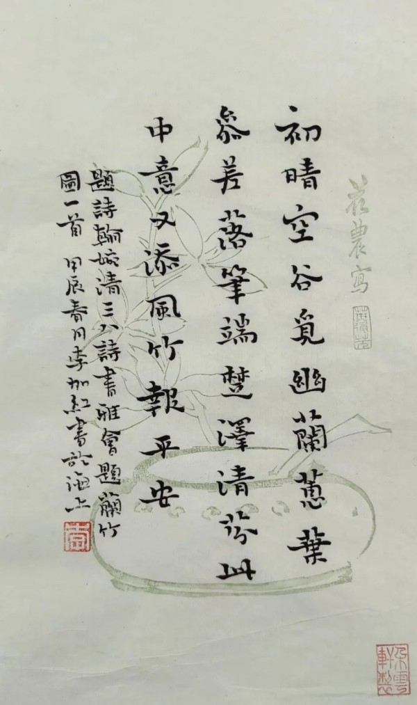 初晴空谷觅幽兰,蕙叶参差落笔端。