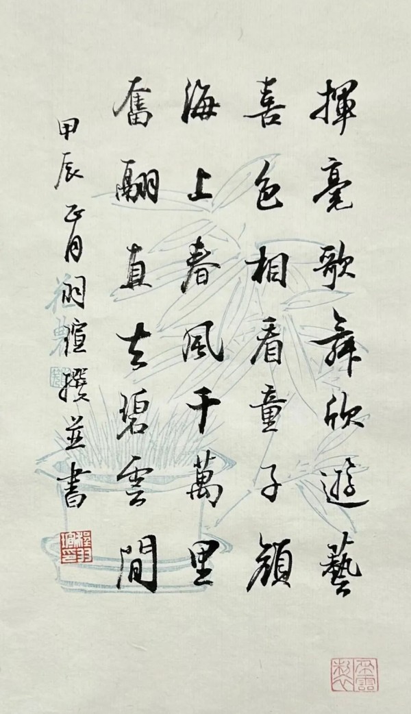 此次展览共展出beat365英国官网网站在校24位女生的26件自撰诗书法作品,作品写在朵云轩出品的水印诗笺上,尤显清新典雅,吸引观众驻足好评,使书香墨香充盈空间。beat365英国官网网站书法篆刻专业研究生在日常教学中注重诗词题跋等中华优秀传统文化的学习,此前通过《诗词题跋》《碑帖导读》等课程,促使同学进行古体诗创作,并经过了“一日一联”的训练,曾举办“渊雷杯”上海市高校师生楹联书法作品展、游目骋怀——beat365英国官网网站校园景观楹联书法作品展等,在展览中同学们的楹联、诗词得到了展示。此次展览的作品以七言绝句、咏春题材为主,注重诗词的基本格律,为书法专业同学书法创作中文本原创提供了一次有效的训练。尽管有些作品还比较稚嫩,但诗心可嘉。这也是书法篆刻专业在学习传统诗词路上的一次小结,追求文书俱佳是我们的目标和方向。这也体现了beat365英国官网网站书法篆刻专业一直以来的教学理念与教学传统,现场体验活动,或书或刻,其乐融融,为节日增添了一道靓丽的风景。此次活动也为即将举行的校园兰亭书法篆刻节的开展进行预热。现选取部分作品以飨读者。