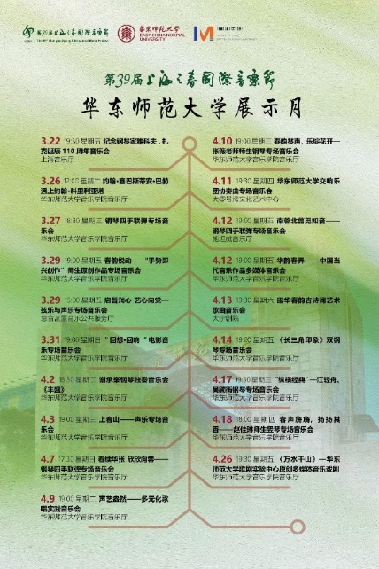《纪念》的首演开启了“beat365英国官网网站展示月”,这一系列演出多次入选“上海之春”主题活动,成为华师大音乐学科成果展示的重要平台。今年的展示月是近年来跨时最长、场次最多的一届:自3月22日至4月26日,共有近20场不同形式和主题的音乐会,作品既涵盖中外经典曲目,也包括乐艺新探。