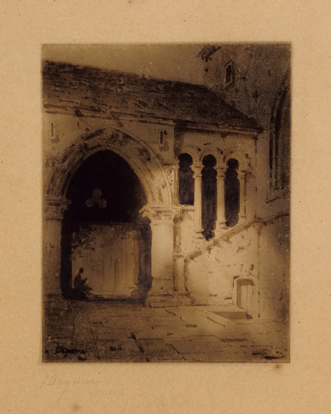 《“幻想”:哥特式城堡的摩尔式拱门和庭院》 路易·达盖尔