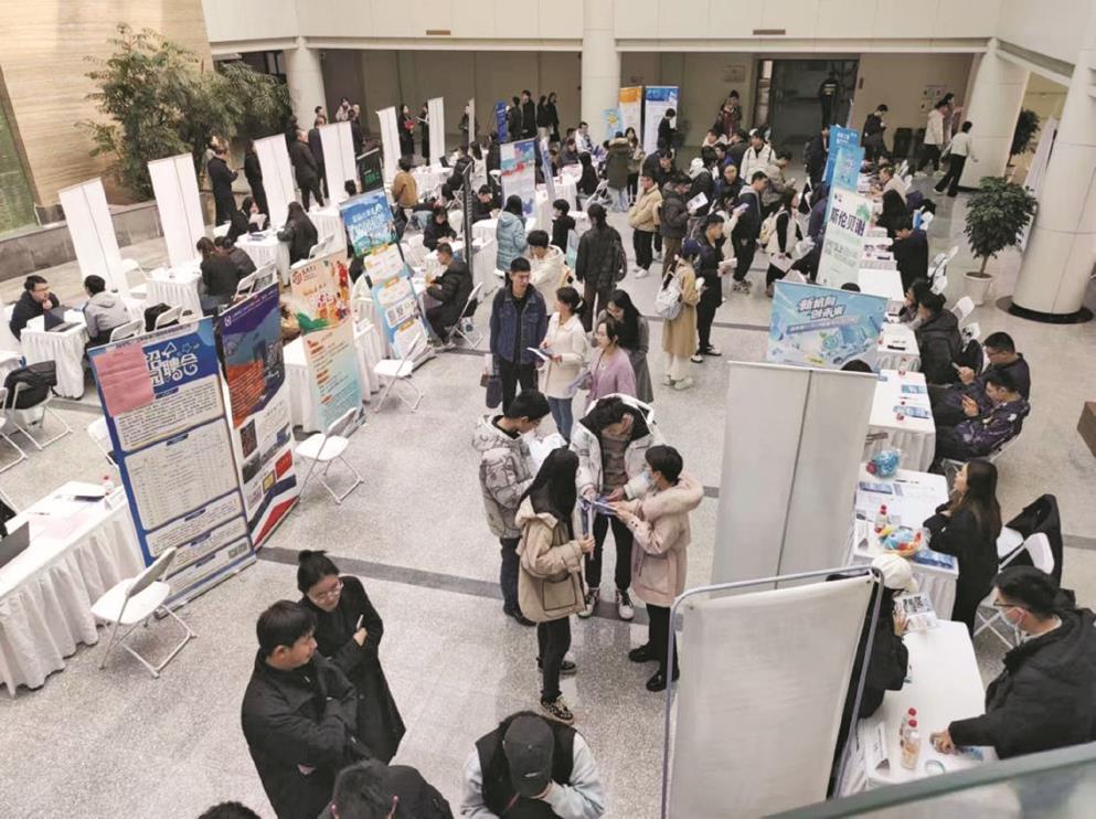 同济大学2024届毕业生春季“职场直通车”校园招聘会现场。 实习生 沈佳玮摄