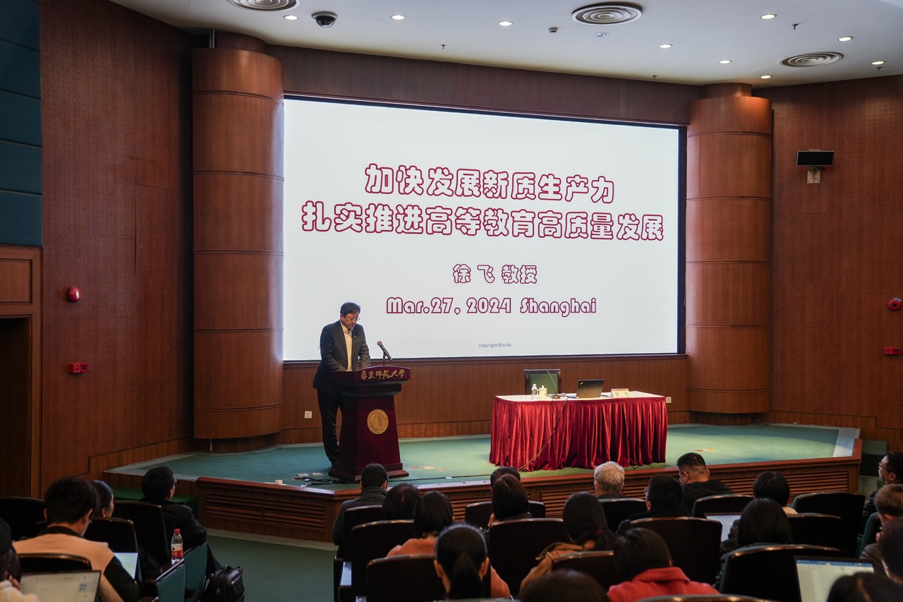 徐飞以“加快发展新质生产力,扎实推进高等教育高质量发展”为题,深入阐释了新质生产力的理论内涵及核心要义,重点从生产资料所有制、劳动者的地位和相互关系、劳动产品分配方式三大方面及具体组成要素,分析了“塑造与新质生产力相适应的新型生产关系”的构建路径。此外,徐飞还就如何发展新质生产力、AGI时代高等教育转型以及新质生产力赋能高等教育高质量发展等方面,分享自己深入的思考和见解。