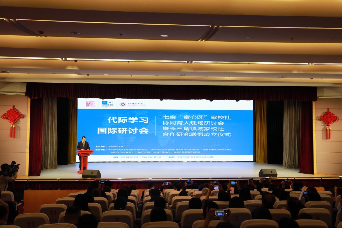 4月2日,七宝“童心圆”家校社协同育人项目之代际学习国际研讨会暨长三角镇域家校社合作研究联盟成立仪式在七宝镇文体中心举行。活动现场,国内首个“长三角镇域家校社合作研究联盟”正式成立。该联盟旨在共同推进长三角镇域教育的综合改革与家校社协同育人工作,加强与高校、科研院所合作,集中进行改革发展研究,共同推动经验积累传播,进一步扩展协同育人的积极影响和效益。