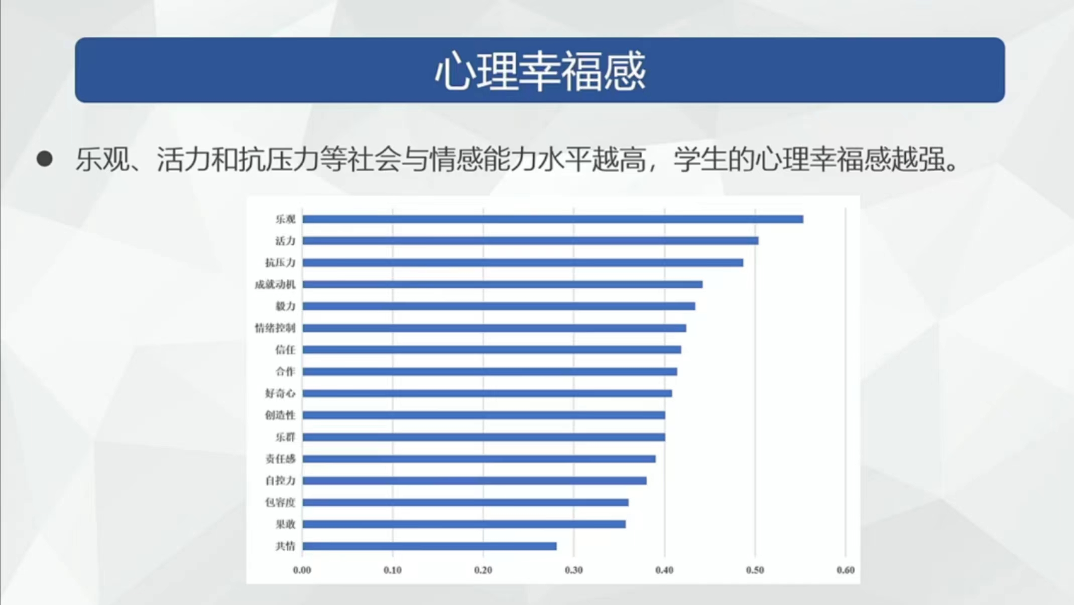 乐观、活力和抗压力等能力水平越高,心理幸福感越强