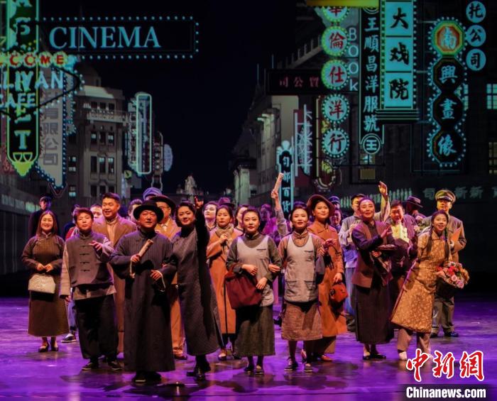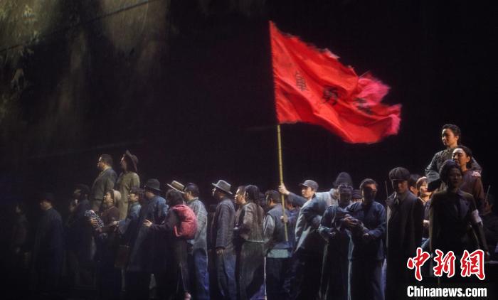 4日晚间上演的歌剧《义勇军进行曲》舞台呈现油画质感。(张桢桢 摄)