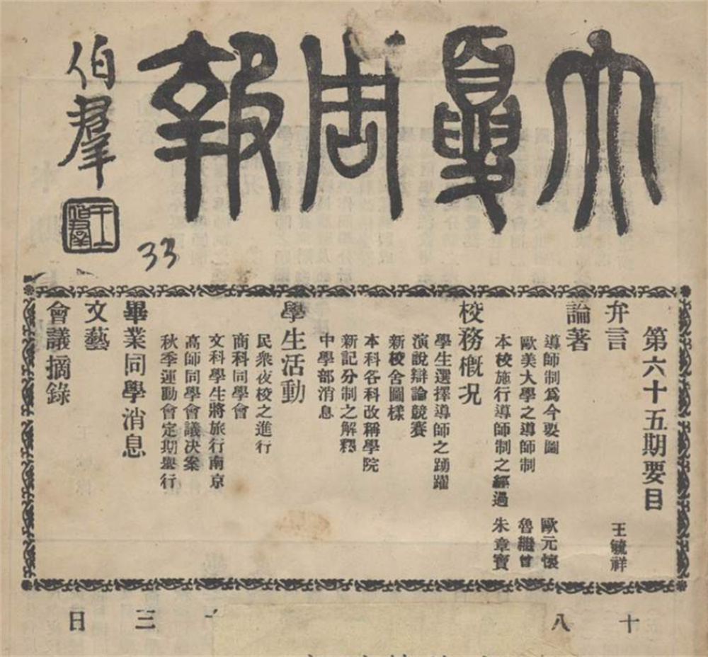 1929年,《大夏周报》关于大夏大学实行导师制的报道。