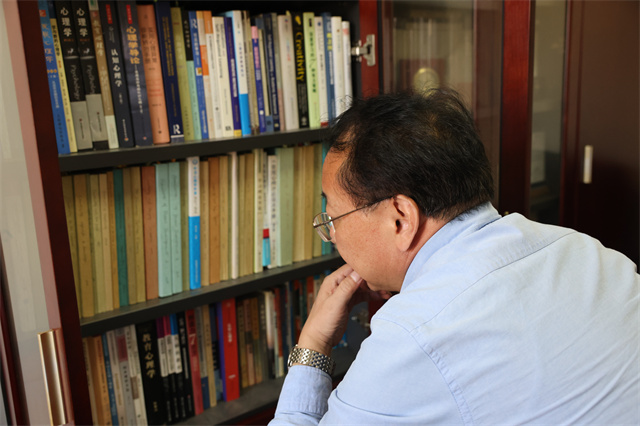 除了心理学类,书橱上还多有滋养心灵的国学类书籍。“当年也曾是一枚想考中文系的文艺青年。”庞维国教授笑着说起高考往事。