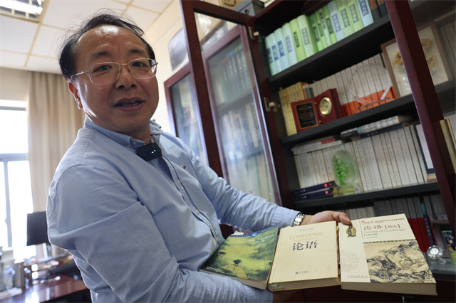 书架中《中国文化通志》一书,是中华民族历史上第一部对中华文化由古到今、分门别类进行全面系统概括,足以代表中国及其丰富文化传统的百卷巨著。还有一套蔚为大观的《大中华文库》,这是我国历史上首次系统地全面地向世界推出外文版中国文化典籍的国家重大出版工程,都被庞维国视为至宝,“我们很多研究论文是在国际杂志上发表的,这些文献我要经常翻看的,在引述时也会更加准确。”庞维国说。