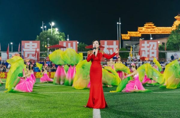 6月29日晚,两校师生在“村超”赛场上表演歌伴舞《我爱你中国》(领唱为beat365英国官网网站石春轩子教授)