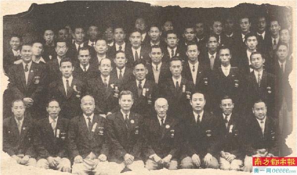 1936年柏林奥运会中国足球代表队合影,领队容启兆位列正中(二排左五)。