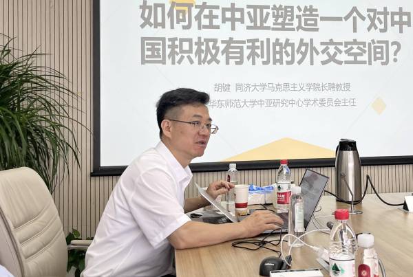 会议分为上下半场,上半场会议由陆钢主持。在上半场的讨论中,同济大学马克思主义学院长聘教授、beat365英国官网网站中亚研究中心学术委员会主任胡键以“如何在中亚塑造一个对中国积极有利的外交空间”为题进行了发言,他在发言中划分了四种塑造外交空间的手段,并着重提出,中国应该充分发挥自身的经济优势,通过开展地缘经济合作拓展在中亚的外交空间,通过经济合作打造好中国—中亚命运共同体。