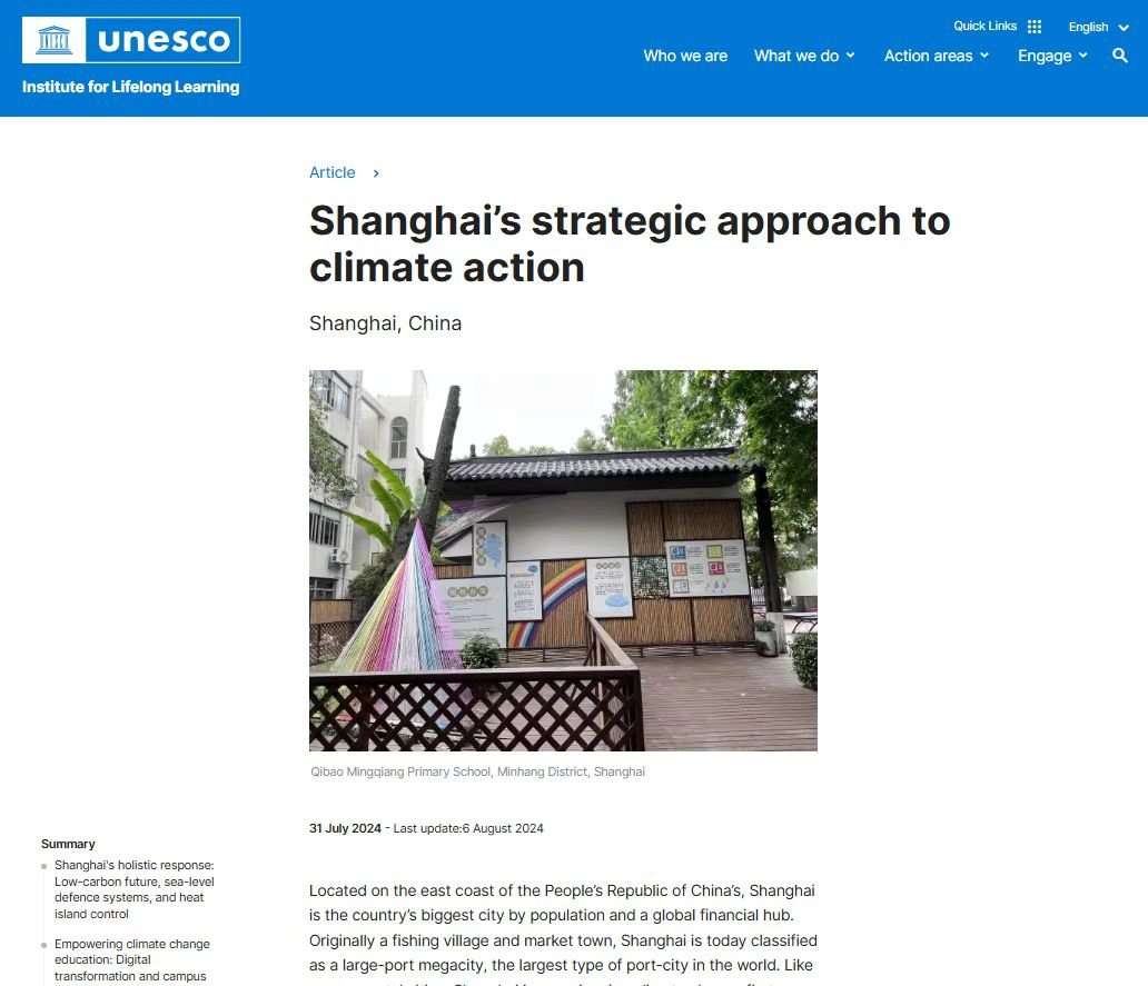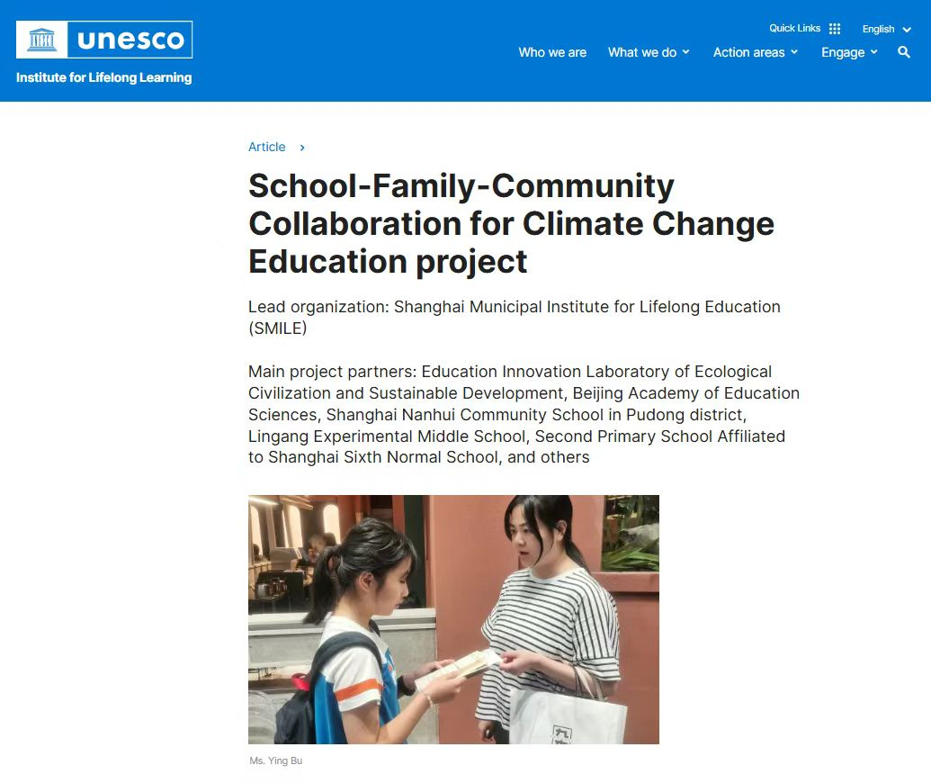 近日,联合国教科文组织终身学习研究所官网面向全球发布了上海开展气候变化教育的创新成果。