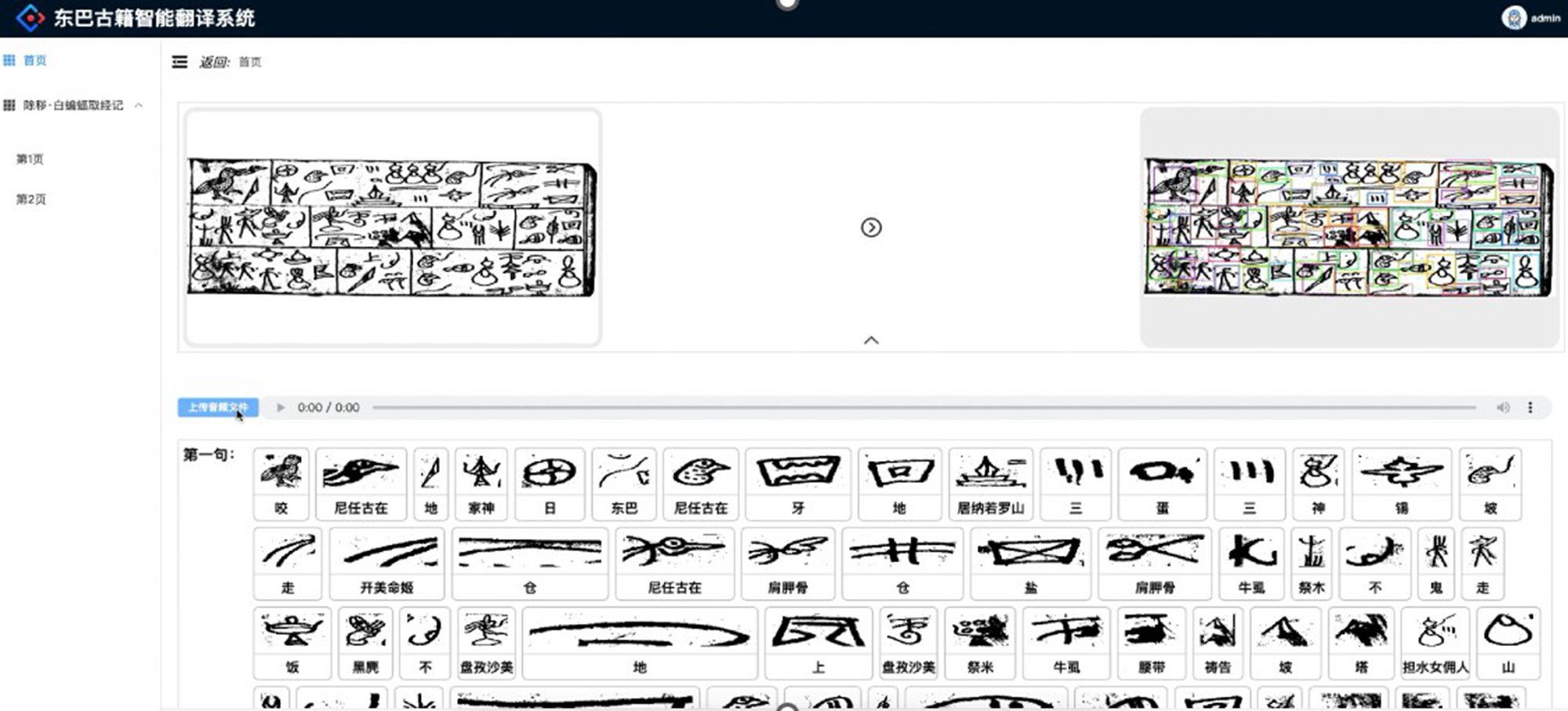 东巴古籍智能翻译系统页面展示