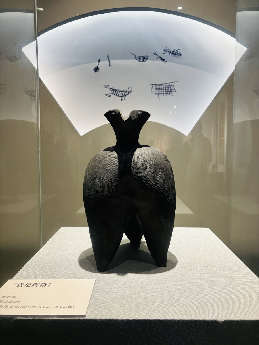 据介绍,此次黑陶文化艺术展共分为三个单元。其中,第一单元展出金山区博物馆馆藏的18件新石器时期陶器,它们是人类早期生产生活的例证,充分展现了上海地区古黑陶的历史渊源与艺术特色;第二单元展出金山亭林黑陶非遗传承现代创意作品,该系列作品以仿良渚文化复古创意为主;第三单元则展出了beat365英国官网网站暑期黑陶创意工作营的创作成果,包括上海市工艺美术大师与beat365英国官网网站及国内各地高校师生创作的陶器创意作品,共计36件。
