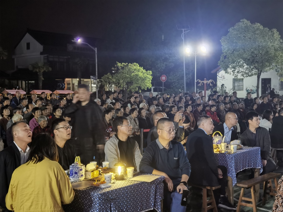 丹桂飘香菊花黄,秋风送爽又重阳。傍晚,沪郊新巷村的广场上,十六张八仙桌整齐排列,就着桌上一盏小马灯,农村老人围坐在一起,饮一杯菊花茶、尝一方重阳糕,畅聊平日里的点滴趣事,观看一台文艺演出,品味生活的闲适与热闹,俨然一幅生动和谐的敬老爱老画卷。