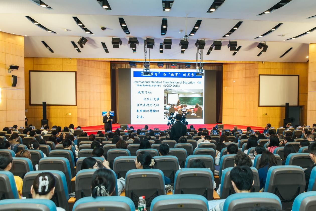 杨进教授发表了题为“国际教育发展和研究中的若干重要议题”的主旨报告。他对核心素养、学习与教育的关系、开发基于神经科学发展成果的教学方法、能力为本位的教育质量评价体系、STEM教育与创新型人才培养等当前学习科学领域广泛关注的重要问题进行了分析和阐述,并基于自身长期在联合国教科文组织的工作经验,分享了联合国教科文组织关于学习与教育的最新观点与报告。杨进教授号召与会者要认真学习贯彻落实全国教育大会精神,不断提高我国教育的国际影响力竞争力和话语权,扩大国际学术交流和教育科研合作,积极参与全球教育治理,为推动全球教育事业发展贡献更多中国力量。