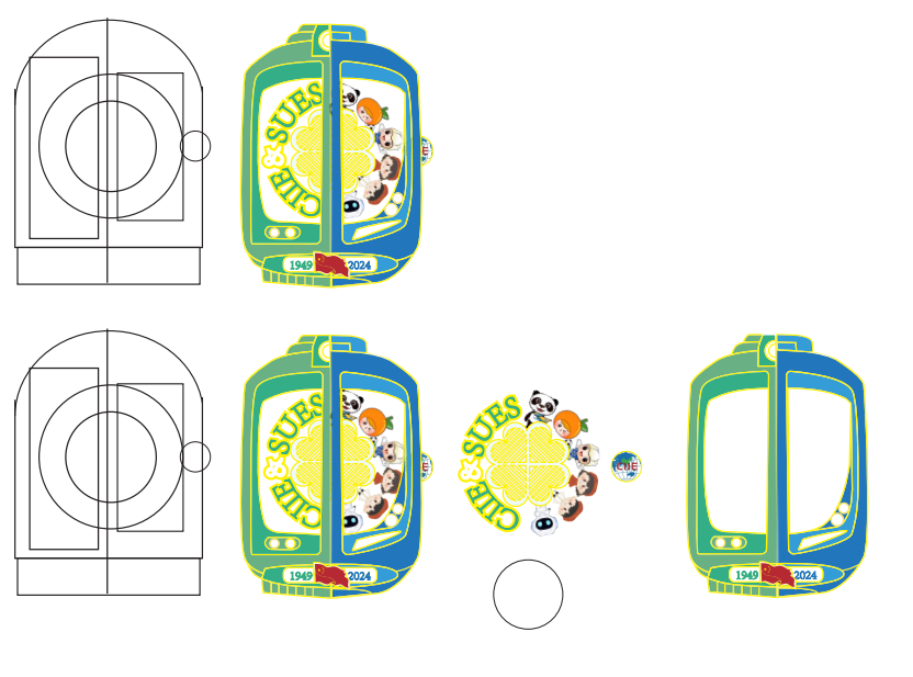第二组“定格交大”的两款隐藏徽章,以胶卷元素为外形,融合交大建筑与交大源源的吉祥物,辅以镂空设计,展现志愿活力与交大风貌。