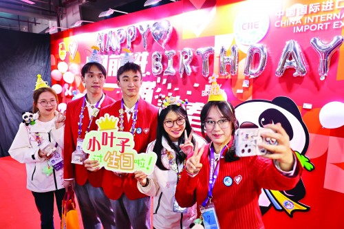 在志愿精神的感召下,与进博同生日的他们在“四叶草”相遇,一同留下青春的进博记忆。来自上海外国语大学贤达经济人文学院的志愿者蒋子晔生日会后,和小伙伴戴上生日帽开心地自拍,“很热闹很感动,我从来没有和其他人一起过集体生日。”她坦言,“小时候可能比较要一个具体的东西,但现在更多是希望自己变成什么样的人。”今年,她想要成为努力追光、与光同行的人,“也希望爱我的和我爱的人平安、幸福、健康。”