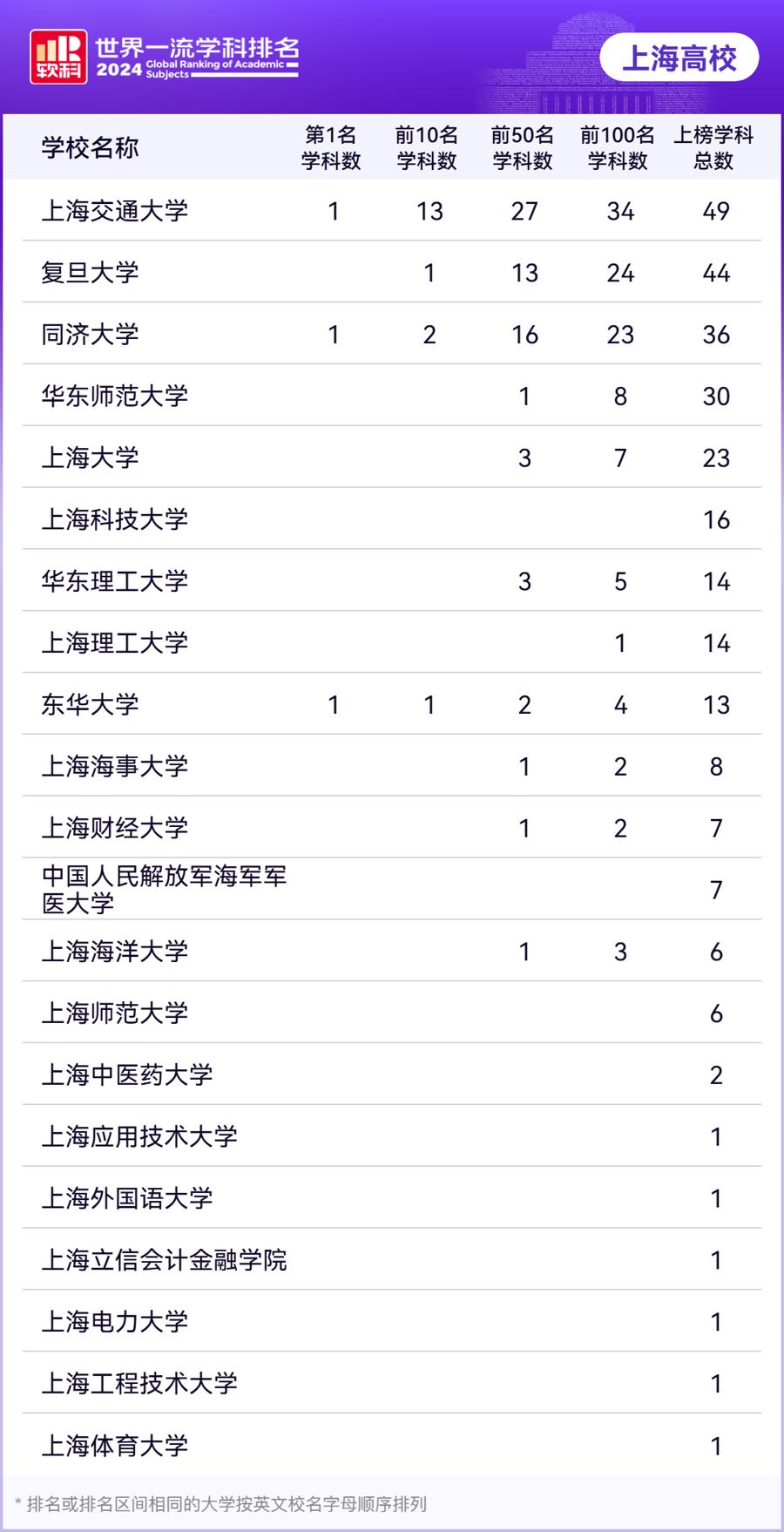 【附长表:中国内地高校表现】其中,上海拥有3个全球冠军学科。