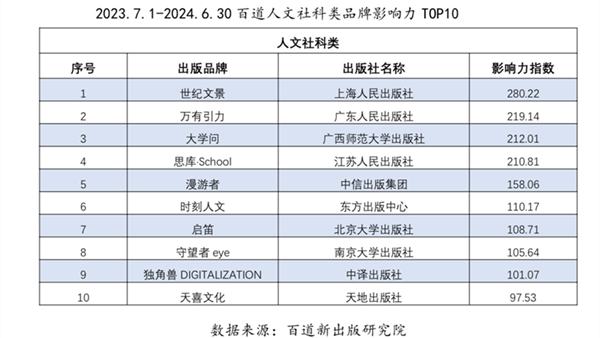 2023年7月1日-2024年6月30日百道人文社科类品牌影响力TOP10