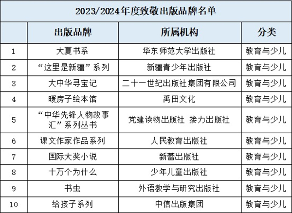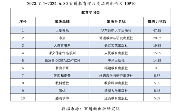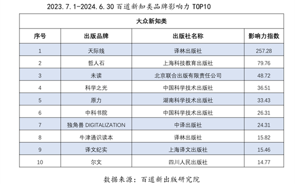 2023年7月1日-2024年6月30日出版品牌影响力集团TOP10