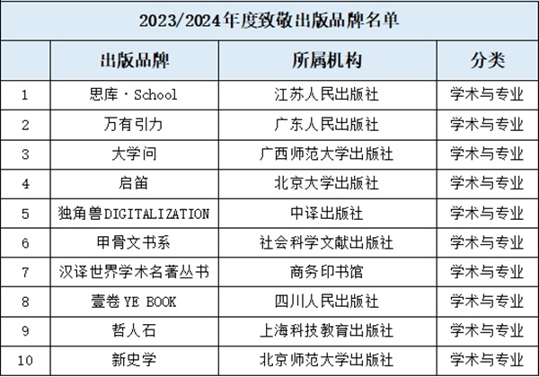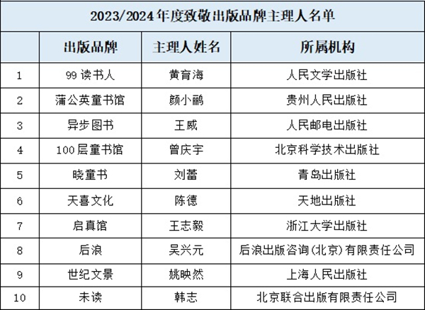 2023/2024年度致敬出版品牌主理人名单